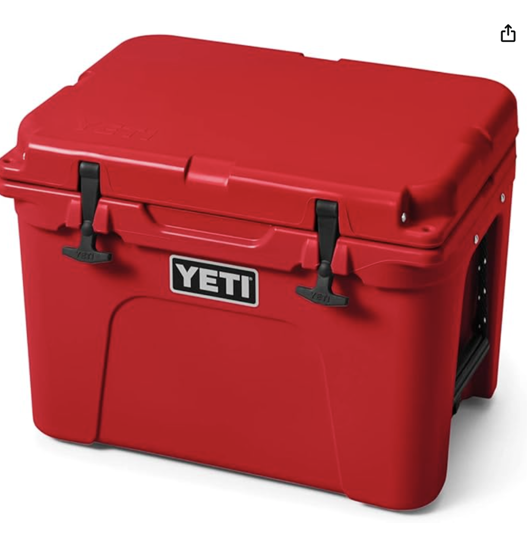 The YETI Tundra 35 Cooler is 20” long x 16 1/8” wide x 15 1/4" high with an empty weight of 20 lbs., and comes with a dry goods basket.