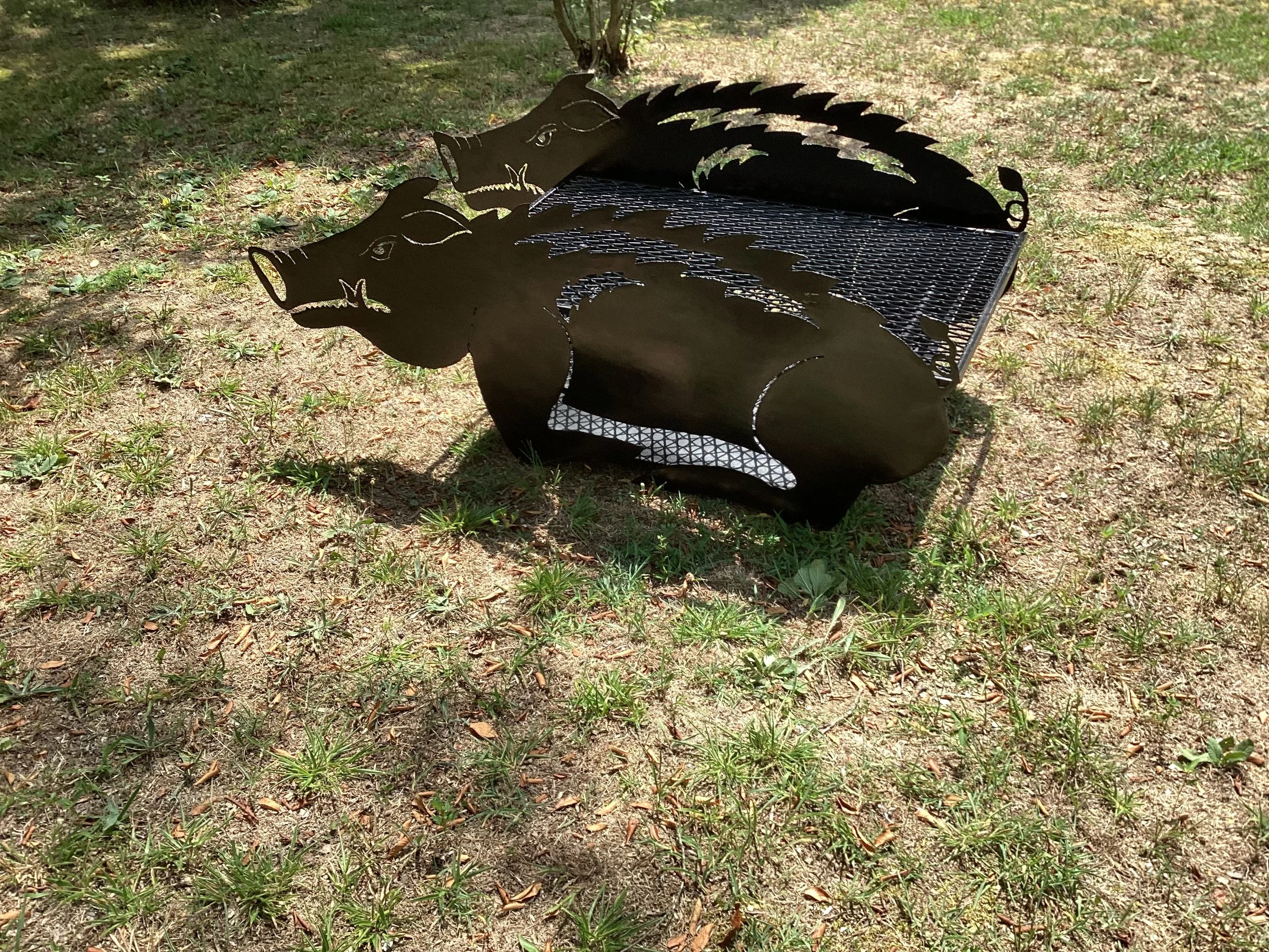 Take home this one-of-a-kind, hand-crafted, Razorback fire-pit/grill perfect for your backyard parties and barbeques.